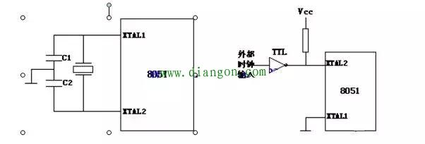 时钟电路就是一个振荡器,给单片机提供一个节拍,单片机执行各种操作必须在这个节拍的控制下才能进行。因此单片机没有时钟电路是不会正常工作的。时钟电路本身是不会控制什么东西,而是你通过程序让单片机根据时钟来做相应的工作。在MCS-51单片机片内有一个高增益的反相放大器,反相放大器的输入端为XTAL1,输出端为XTAL2,由该放大器构成的振荡电路和时钟电路一起构成了单片机的时钟方式。根据硬件电路的不同,单片机的时钟连接方式可分为内部时钟方式和外部时钟方式,如图1所示。