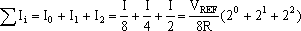 最后将整个网络电路等效为一个阻值为R的电阻,则由C点:I =VREF/R