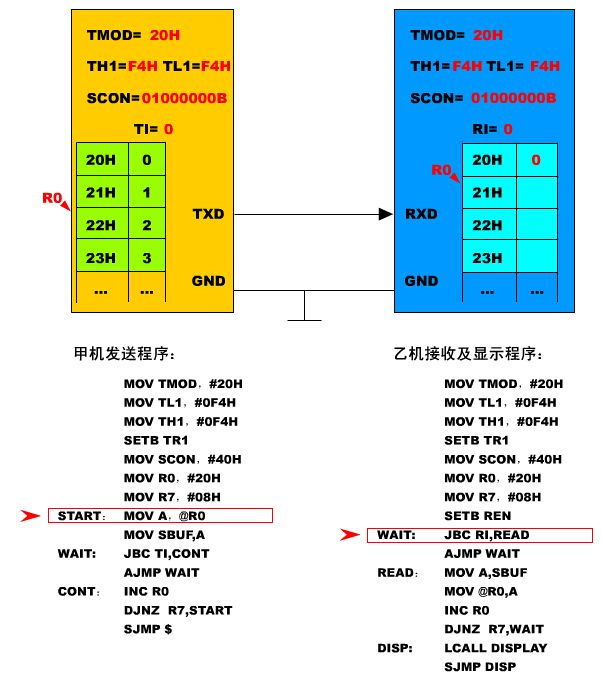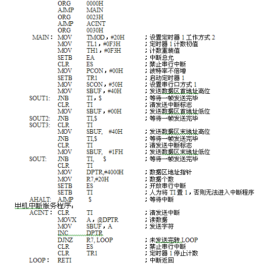 ④串行数据的发送(或接收)的内容包括数据块首末地址和数据两部分内容。对数据块首末地址以查询方式传送,而数据则以中断方式传送。因此在程序中要先禁止串行中断,后允许串行中断。