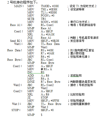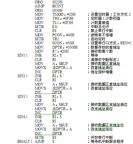 注意:上述程序4个接收地址的程序段可用一个循环程序来代替,此处为了与发送程序对应故分为4段书写。