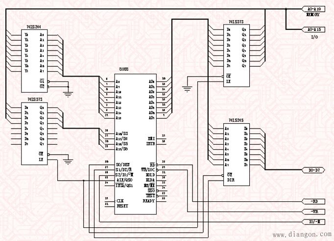 图1 准16位微处理器8088构成的系统电原理图