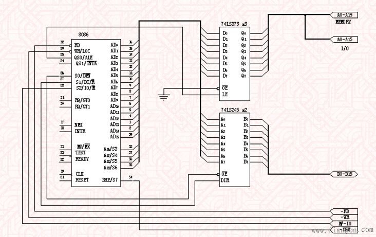 图2 16位微处理器8086构成的系统电原理图