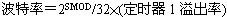 溢出率为溢出周期之倒数,因此,波特率的公式还可写成: