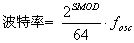 方式2的波特率取决于PCON中的SMOD之值,当SMOD=0时,波特率为fOSC的1/64;若SMOD=1时,则波特率为fOSC的1/32。即: