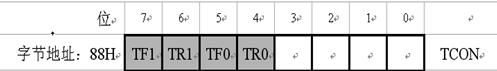 TCON的低4位用于控制外部中断,已在前面介绍。TCON的高4位用于控制定时器/计数器的启动和中断申请。其格式如下: