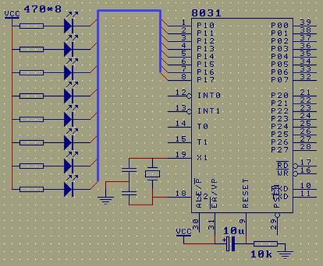 4、 EA管脚:EA管脚接到正电源端。 至此,一个单片机就接好,通上电,单片机就开始工作了。