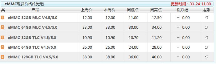 现在手机品牌厂中高阶智能型手机都采用的是eMMC存储方案,据中国闪存市场网报价显示,eMMC 32GB MLC价格在12美金左右,eMMC 64GB MLC价格在33美金左右。如果将手机的存储容量由32GB向64GB升级,生产成本要增加一倍多,提升至128GB成本会更高,这对于大多数生产制造商来讲,很难将容量扩展到128GB。