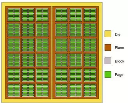 Die/LUN是接收和执行FLASH命令的基本单元。不同的LUN可以同时接收和执行不同的命令。但在一个LUN当中,一次只能执行一个命令,不能对其中的某个Page写的同时又对其他Page进行读访问。下面详解介绍下这些结构单元和之间的联系。