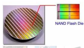 NAND Flash是从原始的硅材料加工出来的,硅材料被加工成晶圆(Wafer),一片晶圆上可以做出几百颗NAND FLASH芯片。芯片未封装前的晶粒成为Die,它是从Wafer上用激光切割而成的小片,每个Die就是一个独立的功能芯片,它由无数个晶体管电路组成,但最终可被作为一个单位封装起来成为闪存颗粒芯片。下面是NAND Flash芯片的详细加工过程。