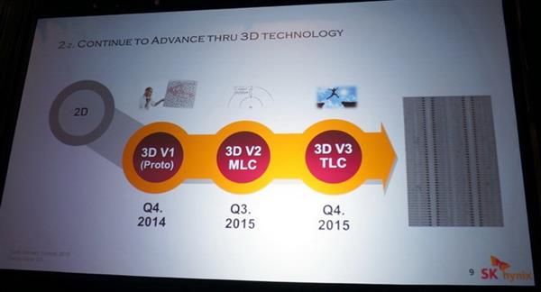 SK Hynix的3D NAND闪存堆栈层数从36层起步,不过真正量产的是48层堆栈的3D NAND闪存,MLC类型的容量128Gb,TLC类型的也可以做到256Gb容量。