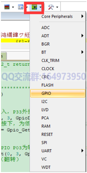 进入仿真状态后点击下图图标可以调出外设的寄存器进行仿真观察。