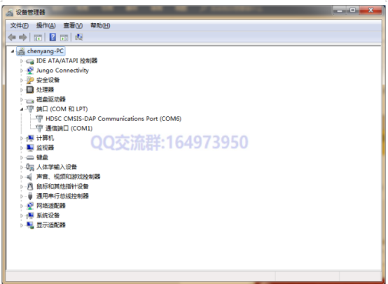 3. 通过 micro-USB 线将开发板与电脑连接,正确安装驱动后会在端口(COM和LPT)下面会显示HDSC CMSIS-DAP Communications Port(COM X)。