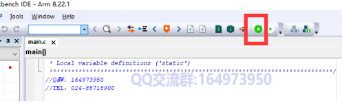 以华大MCU HC32F003的GPIO程序为例,编译通过后点击下面图标进行下载与调试。