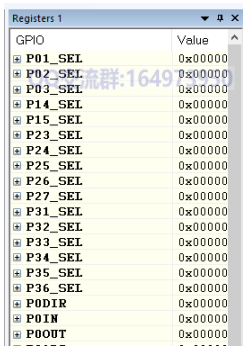 选中GPIO后会看到Registers x里的内容已经变成了GPIO相关的寄存器,如下图所示: