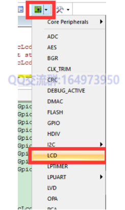 进入仿真状态后点击下图图标可以调出外设的寄存器进行仿真观察。