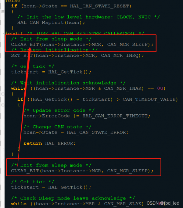 CLEAR_BIT(hcan->Instance->MCR, CAN_MCR_SLEEP);
