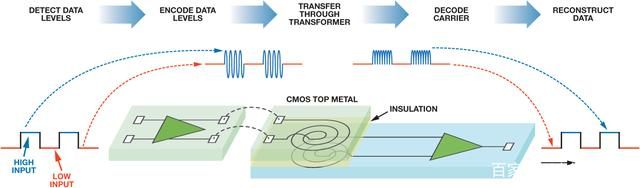 所谓隔离器,类似于在一颗芯片左右两侧的微距离上实现无线射频收发系统,在这样一个收发系统里面,其实包括发射机和接收机以及隔离介质三部分。