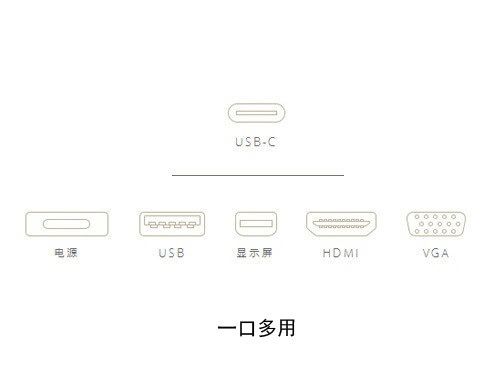它和iPhone手机中Lightning接口一样轻薄小巧,可以扩展成电源/USB传输/VGA或HDMI三个接口,通过适配器,还可以兼容USB3.0、USB2.0等上一代接口。