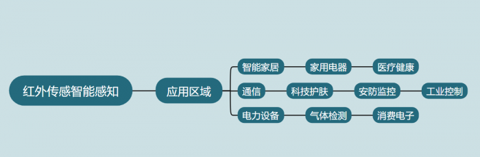 红外传感技术应用领域——智能家居——家用电器——医疗健康——通信——科技护肤——安防监控——工业控制——电力设备——气体检测——消费电子。