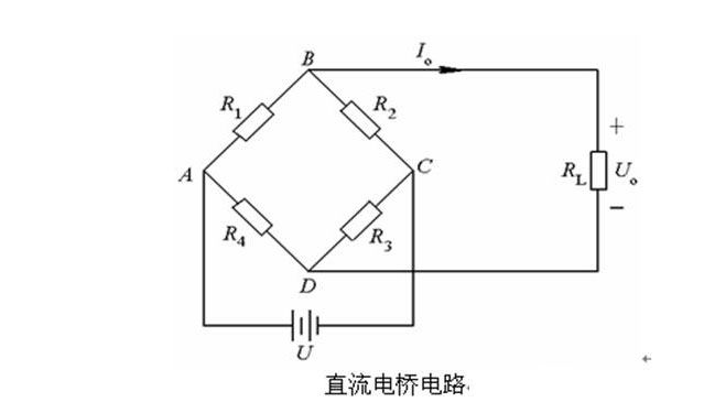 ①直流电桥电路,直流电桥电路是由连接成环形的四个桥臂组成的,每个桥臂上是一个电阻,分别为R1、R2、R3及R4,他们可全部或部分是应变片。