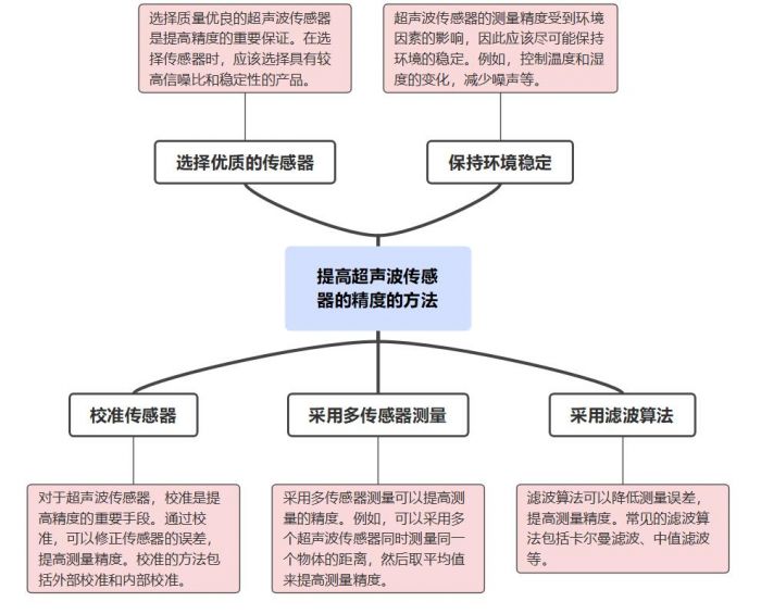 超声波传感器是一种常见的测量距离的工具,其精度是影响测量效果的重要因素之一。在选择和使用超声波传感器时,应该注意传感器的质量、环境稳定性、噪声等因素,并采取相应的措施来提高测量精度。