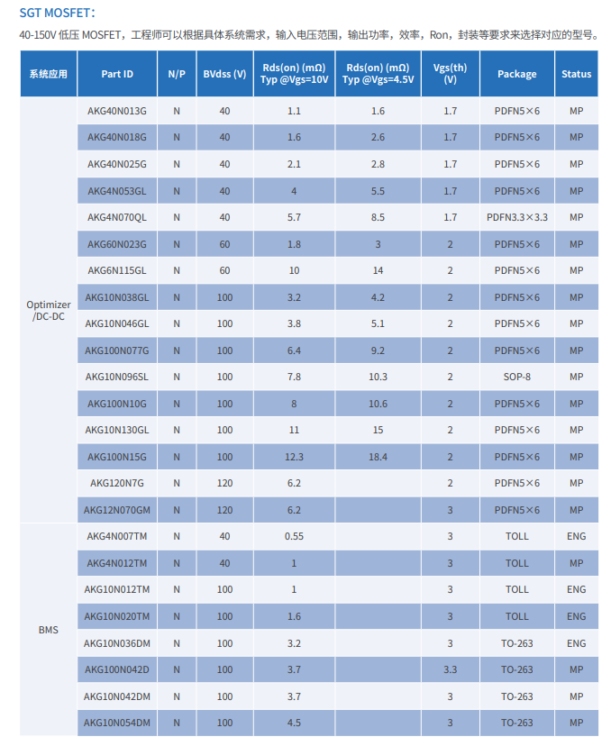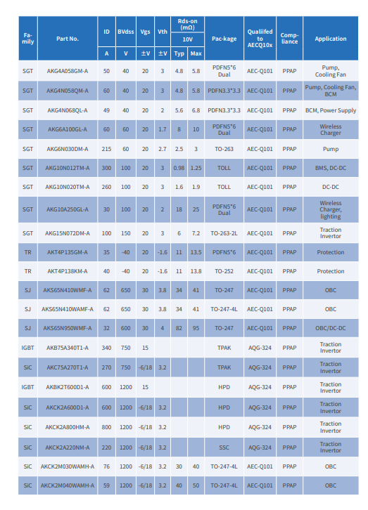 中低压Trench MOS以及SGT MOS,高压SJ超结MOS,IGBT,FRD,SiC MOS和