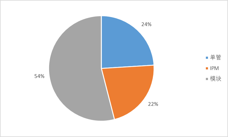 2020 年单管、 IPM、模块市场规模占比为 24%、 22%、 54%。
