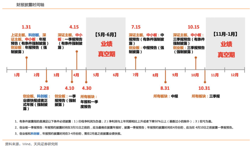 2、次年2月底之前,创业板和中小板企业如果没有披露年报,则必须披露业绩快报,主板企业自由选择是否披露业绩快报。业绩快报比预告更详细,会包含主要的财务指标数据。