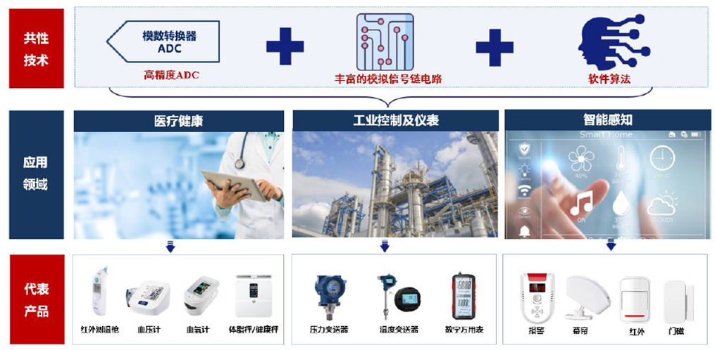“公司医疗健康SoC芯片是基于高精度ADC的信号处理SoC技术,包括红外测温信号处理芯片、智能健康衡器SoC芯片、人体健康参数测量专用SoC芯片等,广泛应用于红外测温枪、体脂秤、健康秤、血压计、血氧计等各类医疗健康产品中。” 罗伟绍对芯八哥记者说道。