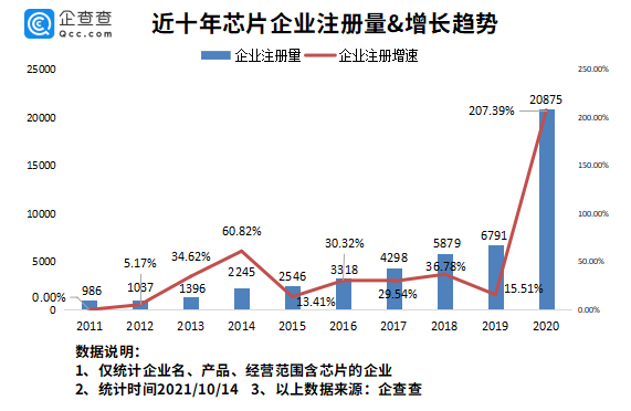 另据笔者了解,这份白皮书是在去年9月发布的,或许还不能准确预估后来的“造芯热”带来的缺口涨幅。数据就显示,2020年我国新增芯片相关企业约2.09万家,而2021年前9月,我国新增芯片相关企业已达3.21万家。