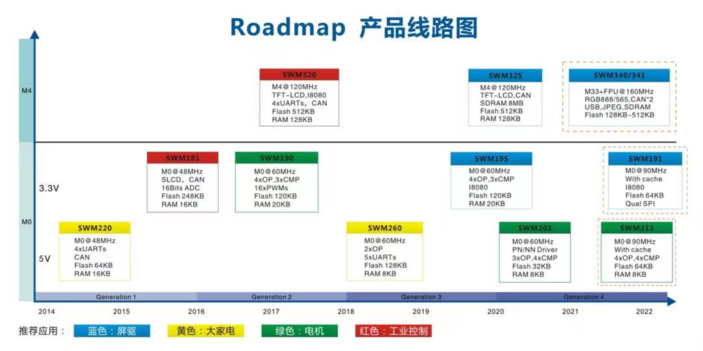 从创立起就专注于MCU的研发设计和销售,基于生态和客户群体考虑,主要做的还是基于arm cortex内核的32位产品,其中以M0和M4系列产品为核心。公司基于智能交互和减碳节能的理念,围绕智能家居相关的市场进行布局,目前下游主要应用集中在白电主控、电机驱动、屏幕控制等方面,客户主要集中在国内一流的家电厂商以及工控客户。
