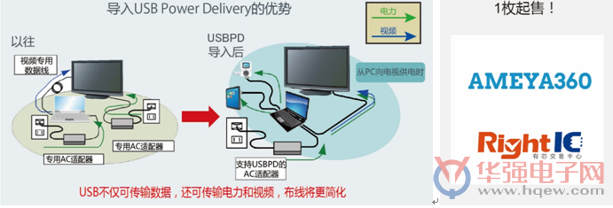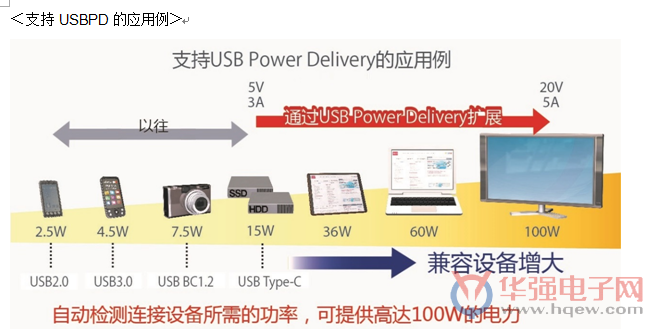 利用USB连接线,可进行高达100W供受电的USB功率扩展标准。可给笔记本电脑等以往无法通过USB供电进行驱动的设备供电,可实现移动设备的快速充电(缩短充电时间)。