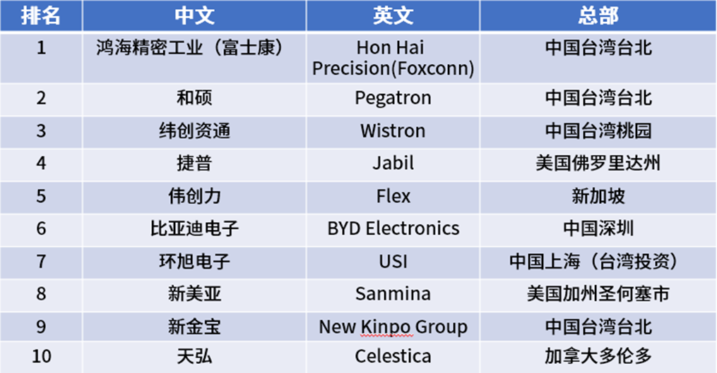 从竞争格局来看,EMS行业格局相对比较稳定,前十大厂商历年来变化不大。根据知名电子制造服务研究网站MMI的数据统计,鸿海精密(富士康)、和硕、纬创资通、伟创力、捷普等国际知名企业凭借规模、经验等优势,在EMS市场占据了较大的市场份额。值得一提的是,鸿海精密(富士康)以占前十大EMS厂商收入接近一半的比例,连续多年位据EMS行业第一的宝座。