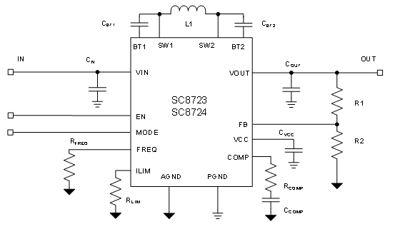 SC8723/SC8724 是一个集成Power MOS的同步升降压变换器。支持最大22V 的输入及输出电压,无论是输出电压高于、低于或等于输入电压,都能提供出色的电源效率和电压调节,非常适合USB-HUB、移动电源、适配器等应用。
