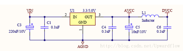 上图中的L1是磁珠,在此也顺便说一下磁珠与电感的区别,或者说是它们不同的应用区域吧。我们都知道它们只是频率特性不同而已。磁珠在各种不同的频率电路中,应用范围要比电感广泛一点。电感是储能元件,而磁珠是能量转换(消耗)器件,电感多用于电源滤波回路,侧重于抑止传导性干扰,磁珠多用于信号回路,只要用于EMI方面,用来吸收超高频信号,像一些RF电路,PLL,振荡电路,含超高频存储器电路(DDR,SDRAM,RAMBUS等)都需要在电源输入部分加磁珠,而电感是一种储能元件,用在LC振荡电路、中低频的滤波电路等,其应用频率范围很少超过50MHz。