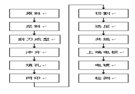 湿式制程的流程与半湿式相当的类似,两者唯一的差别在于上下基板的制作方式,湿式法为利用印刷方式制作基板,而半湿式是利用生胚薄片。