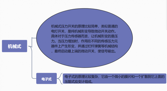 压力传感器的工作原理,根据压力传感器的结构,通常分为如下两种:机械式和电子式。具体的,我们分别对于两者的原理做说明。