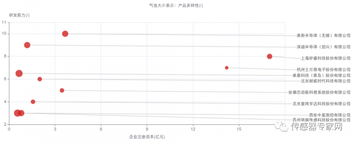 中国MEMS惯性传感器行业竞争格局分析从企业注册资本、研发能力、产品多样性几个维度入手。