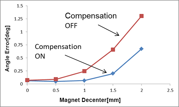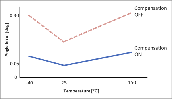 无论哪种传感器,组装误差都会导致角度精度下降,因此要求工程师投入大量精力来实施补偿措施。TAD2141配备自动补偿功能,可大幅减少此类工作量。