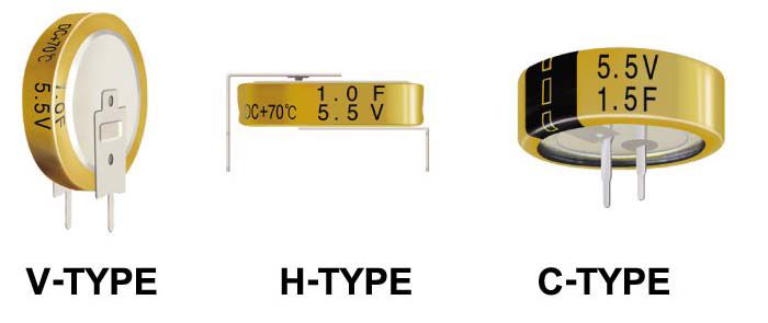 型号 | 工作电压(V) | 容量(F) | 内阻 | V-TYPE | H-TYPE | C-TYPE |