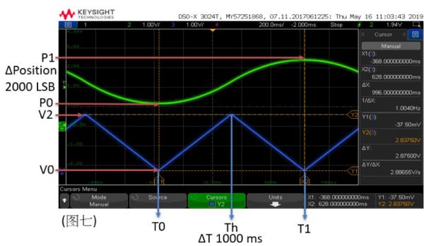 CH2 绿色:位置轨迹(0~5) Voltage对应了(0~4095) LSBCH3 蓝色:速度轨迹(0~5) Voltage对应了(0~4095) V
