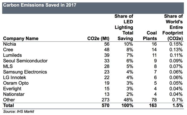 LED灯在2017年减少了五亿多吨二氧化碳气体排