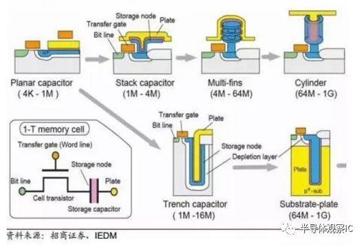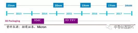 DRAM每一次制程的更新换代,都需要大量的投入,以制程从30 nm更新到20 nm为例,后者需要的光刻掩模版数目增加了30%,非光刻工艺步骤数翻倍,对洁净室厂房面积的要求也随着设备数的上升而增加了80%以上,此前这些成本都可以通过单晶圆更多的芯片产出和性能带来的溢价所弥补,但随着制程的不断微缩,增加的成本和收入之间的差距逐渐缩小。故各大厂商开始研究Z方向的扩展能力,三星率先从封装角度实现3D DRAM,采用TSV封装技术,将多个DRAM芯片堆叠起来,从而大幅提升单根内存条容量和性能。