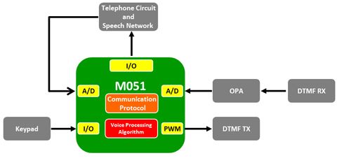电话种类可分为数字电话与传统电话,二者差异在于传送的讯号是模拟讯号或是数字讯号。数字电话不同于传统电话有:数字电话通话时不容易受干扰及不容易被窃听,而且具有简易扩充性与节省拉线等优点。由于数字电话需要高速A/D转换功能、高速的数据处理,包含针对数字讯号进行数学运算,因此NuMicro M051™极适合应用于数字电话产品。