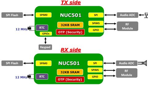 江南app公众号 NUC500系列主要特色为具有高性能、低成本、低功耗、32位ARM®的ARM7TDMI内核,NUC500内建32 KB/64 KB SRAM可以有足够的内存可以支持持续程序的运行和声音数据的缓冲储存,并且NUC500速度可以达到80MHz的速度,高速处理声音压缩和解压缩技术。,尤其是内建audio codec和USB device可以节省系统成本和方便连接上位机沟通。Nuvoton使用NUC500 系列建立了一个2.4GRF麦克风的产品演示,可以除了展示高性质的声音质量,并且可以有比其他方案更远距离而且更稳定的无线传输,所以NUC500系列在无线喇叭的应用中可以说是一个很好的选择方案。