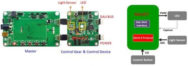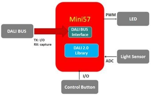 该方案主要实现DALI 2.0所需的多主机控制,此外,所需的软硬件完全开源,是一个对于开发者极为友善的平台,借由NuMicro Mini57系列的高运算能力,快速转化资料以进行装置控制,开发者亦可以实现复合型装置应用。
