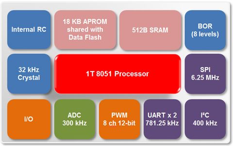 N76E885 为高速 1T 8051 单片机 系列,其特点为 提供超越 工业温度规格 (-40~105 ℃ ) ,宽电压工作范围 2.4V 至 5.5V 、 22.1184 MHz 内 建 RC 晶振 ( 全温全压 2% 精确度 ) 、并 内 建 Data Flash 、 欠压检测 、 高抗 干扰 能力 ( 8KV ESD/4KV EFT ) 、 支持在线 系统 编程 (ISP) 、支持应用中在线更新 (I A P) 和在线电路编程 (ICP) , 提供 TSSOP28 和 TSSOP20 两种选择 。