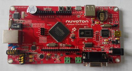 先前新唐曾出过NUC472的产品,只不过那是一款功能相对简单些的NuTiny-SDK-NUC472开发板,如图2所示。其基本配置为主频72MHz、512KB Flash、64KB SRAM,MCU是176引脚的NUC472HI8AE。