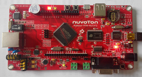 期盼中的NuMaker-PFM-NUC472开发套件终于实实在在地出现在面前,拆去外包装红色的开发板如火般呈现在眼前,如图1所示。