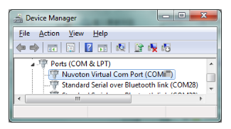 (3) 在设备管理器中找到 Nuvoton Virtual Com Port。